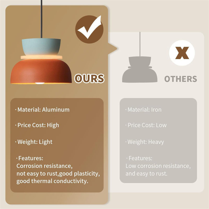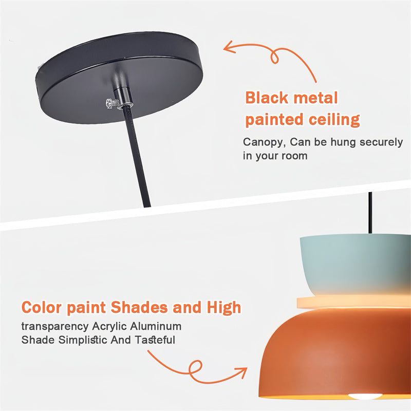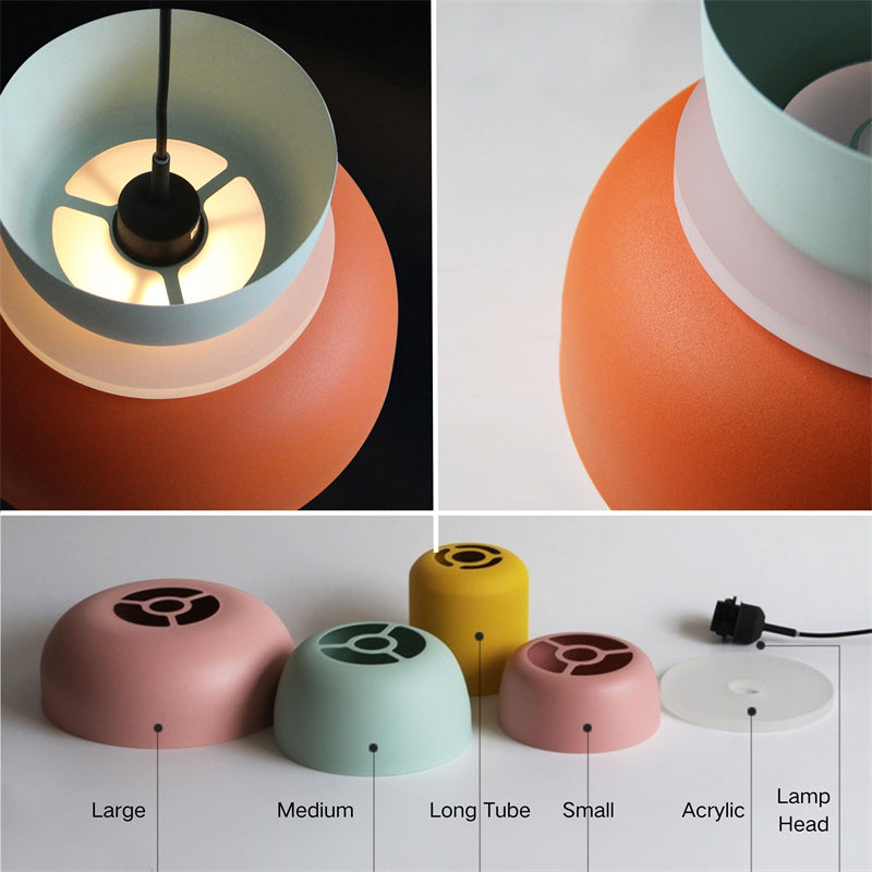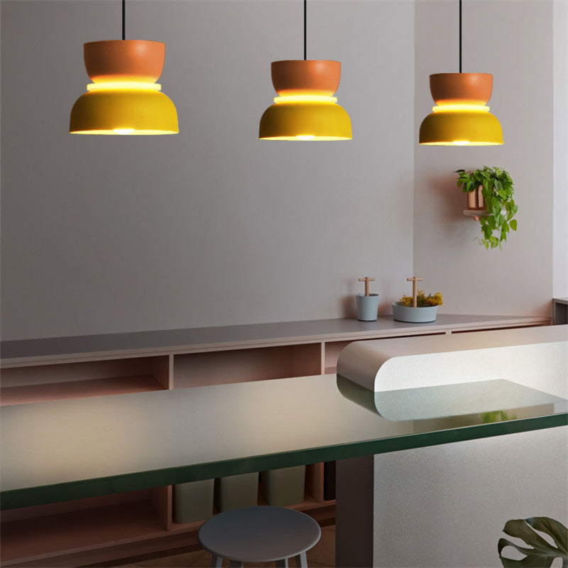 Colorful Macaron Pendant Light features a rounded shade with soft color tones and a simple form that provides direct, even lighting. The design adds a subtle accent of color while maintaining a calm and orderly appearance. It can be used as a single pendant or arranged in a series above dining tables, kitchen counters, or hallway areas to create a coordinated lighting layout.