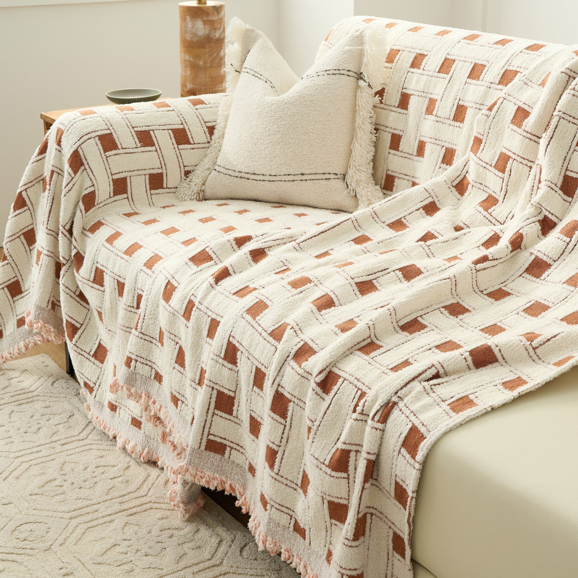 A soft chenille cover that brings warmth and texture to colder days. Its subtle crosshatch weave adds quiet structure while the plush, skin-friendly surface invites relaxation. Designed for comfort, durability, and everyday use, it protects furniture and doubles beautifully as a winter throw.