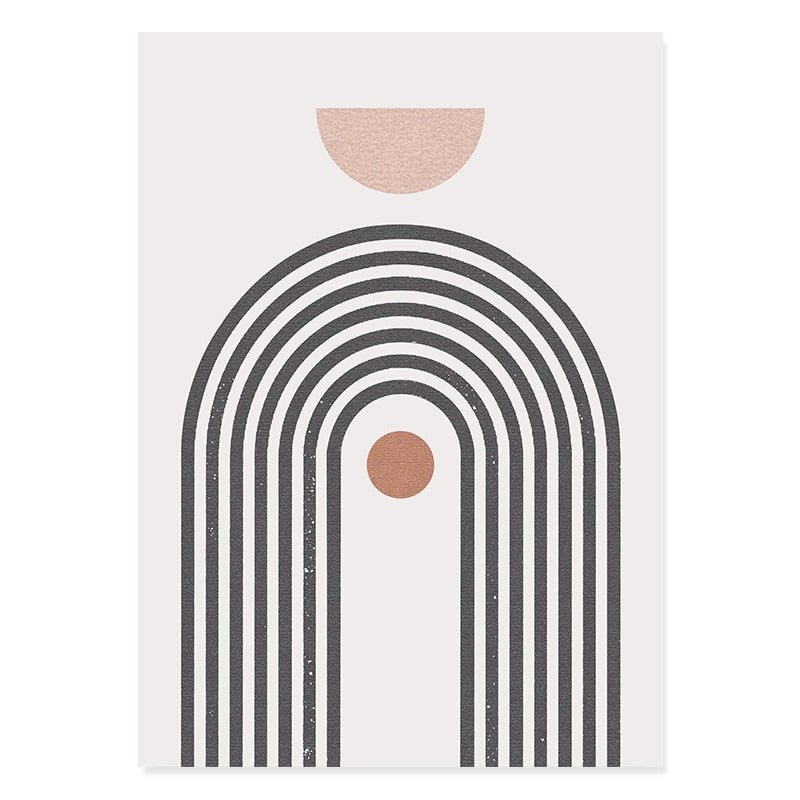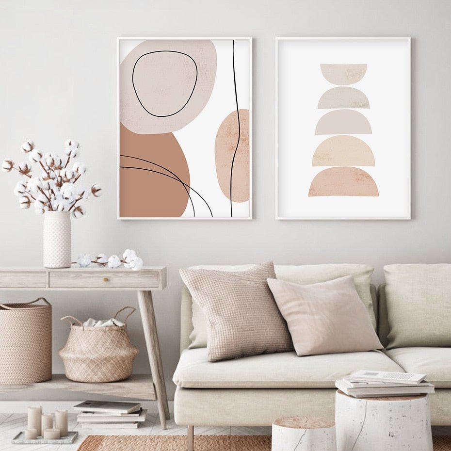 Boho Geometric Canvas Wall Art presents a collection of abstract compositions built from circles, semicircles, and linear elements arranged in balanced formations. The design focuses on proportion and rhythm, combining soft neutral tones with subtle contrasts in black. The result is a series that conveys calm and structure without relying on figurative or natural motifs.