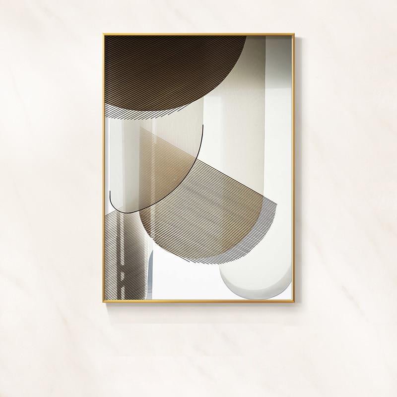 The collection includes eight designs that can be displayed individually or arranged together to create a coordinated wall layout. Soft tones of gold, brown, and grey provide depth and warmth while remaining understated. The smooth textures and controlled palette allow the artworks to complement both light and dark interiors.