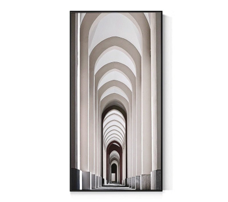 Moroccan Arch Canvas Wall Art draws inspiration from the architectural forms of North Africa, capturing the repetition and symmetry of arched corridors in measured perspective. The artwork focuses on light, shadow, and depth, evoking the atmosphere of traditional Moroccan buildings with their balanced proportions and textured surfaces.